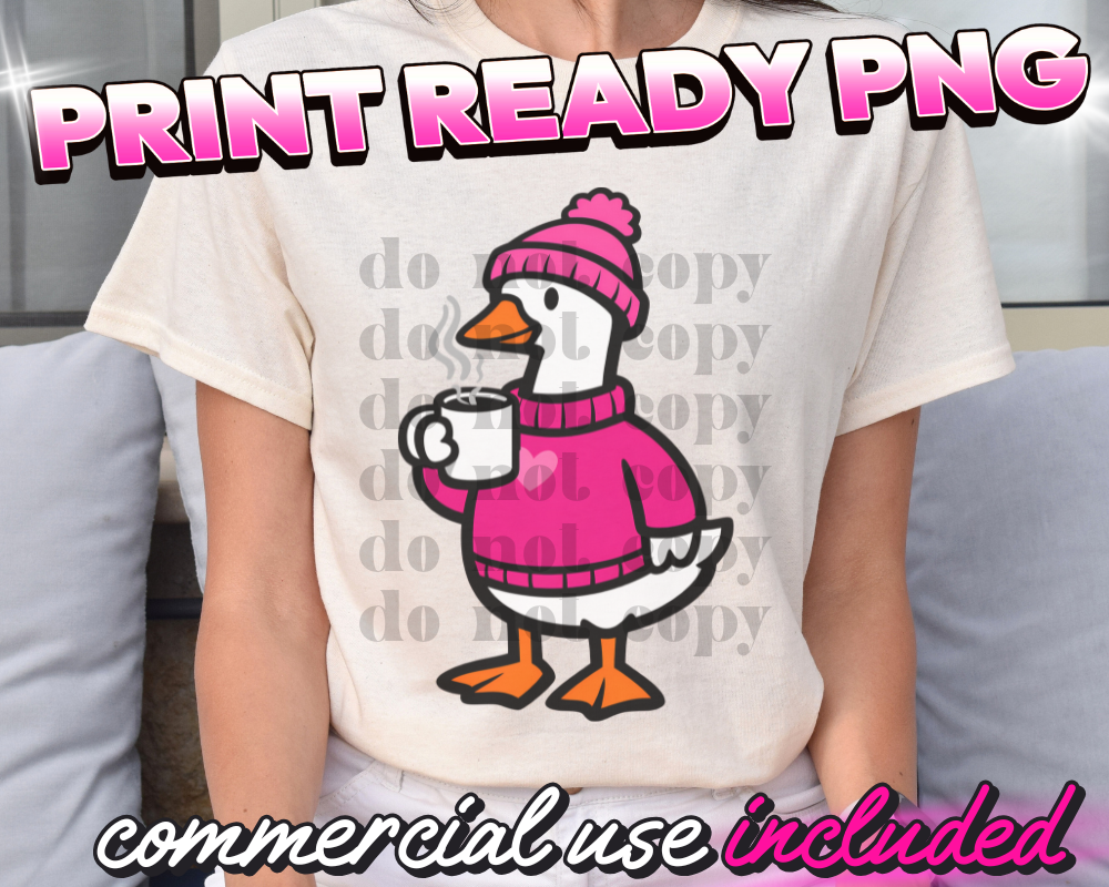 Pink Valentines Coffee Goose || High-Quality, Print Ready PNG